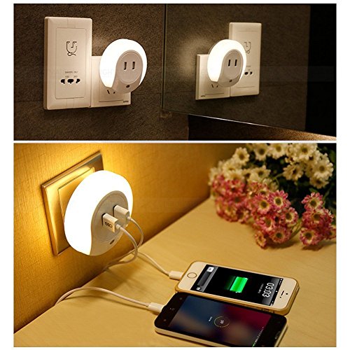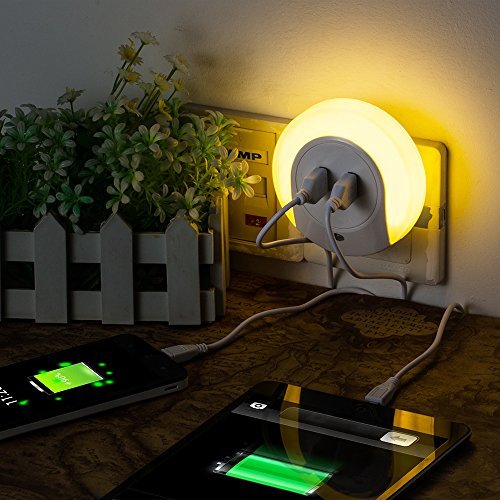 WONFAST® LED Night Light with Dusk to Dawn Sensor and Dual USB Wall Plate Charger-(Warm white)