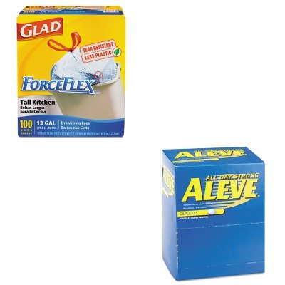 Studio : Aleve Publisher : Aleve Binding : Office Product Product Description lt;stronggt;PFYBXAL50lt;/stronggt;lt;BR/gt;Aleve Pain Reliever Tabletslt;BR/gt;Temporarily relieves minor aches and pains due to arthritis, muscular aches, backache, menstrual cramps, headache, toothache and common cold. Also temporarily reduces fever. Packaged for individual use to replenish first aid stations and kits. Description: 1/Pack Quantity: 50 per box For Use With: First Aid Stations/KitsIndividual Use.lt;BR/gt;lt;BR/gt;lt;stronggt;COX70427lt;/stronggt;lt;BR/gt;Aleve Pain Reliever Tabletslt;BR/gt;One quick pull and it's closed Only Glad has the strength of ForceFlex, the unique diamond-textured plastic that stretches, preventing rips and tears. Three-layer drawstring makes even the fullest bag no problem to close, lift and carry. Application: Can Liner Capacity Range Volume: 13 gal Materials: Plastic Colors: White. 0