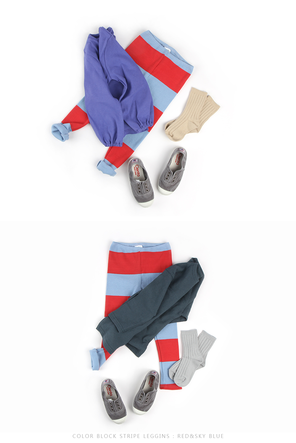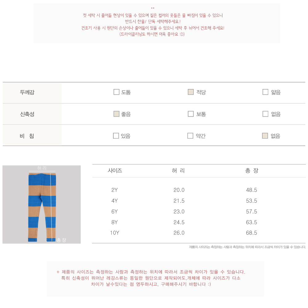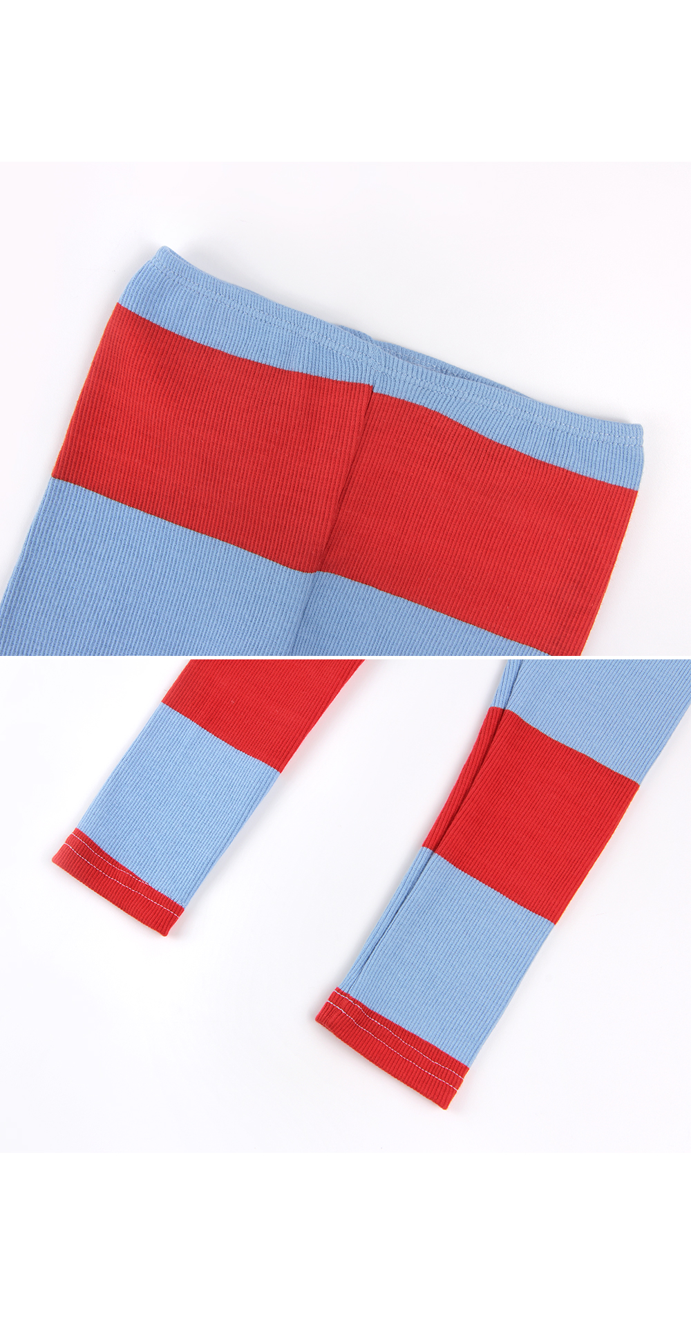 큼지막한 스트라이프 패턴이 한눈에 쏙- 들어오는 골지소재의 레깅스입니다.