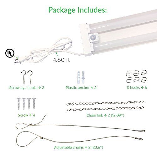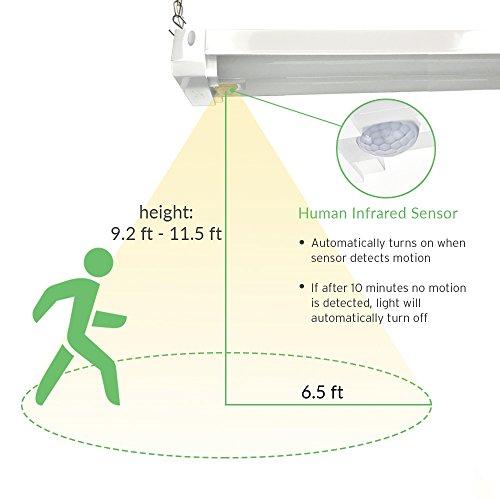 ✔ MOTION SENSOR: Light will automatically turn off after 10 minutes if no motion is detected. FREE: two additional free adjustable chains included with each purchase. BUY WITH CONFIDENCE: 5 YEAR WARRANTY. Reduce re-lamp frequency. One of the highest standard shop lights on the market; Preferred by most contractors and electricians. Guaranteed to have adhered the most demanding quality control procedures. EXCELLENT PERFORMANCE