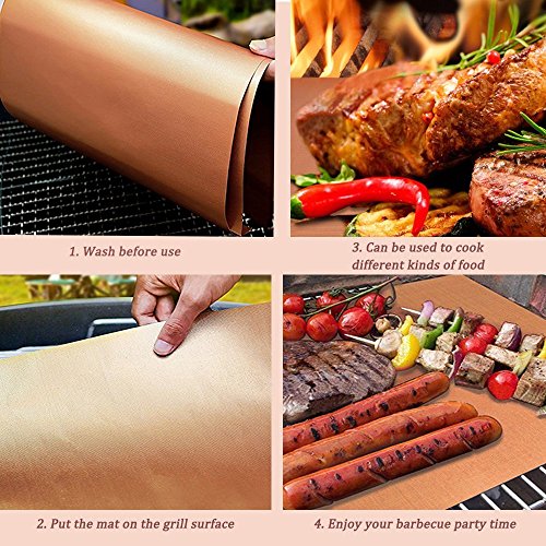 - 100% NON-STICK - 100% Non-Stick means NEVER barbecue on a grimy, dirty grill grate AGAIN! The grill mats are reusable for years! Non-stick BBQ grill mat prevent even the smallest morsels from falling through the grates. Keep your grill looking brand-new and no more clean-up of your dirty grill!