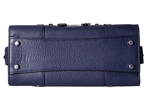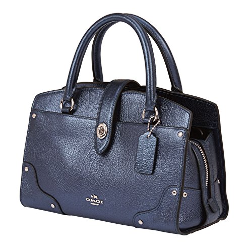 Coach Mercer 24 Pebbled Grain Leather Satchel Handbag in Metallic Midnight Blue