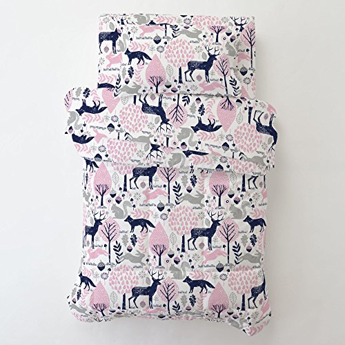 Studio : Carousel Designs Publisher : Carousel Designs Binding : Baby Product Product Description Toddler pillow case in Bubblegum Pink and Navy Woodland Animals, with pillow. Our toddler pillowcases are designed to be a perfect fit for our toddler pillows, and are guaranteed to be a comfy fit for your toddler! Measures 14" x 21". Pillow included, measures 14" x 20". Our toddler pillows are made with recyclable hypoallergenic polyester fiberfill. 0