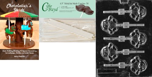 Cybrtrayd 'Chocolate Kid Boy Lolly' Kids Chocolate Candy Mold with 50 4.5-Inch Lollipop Sticks and Chocolatier's Guide