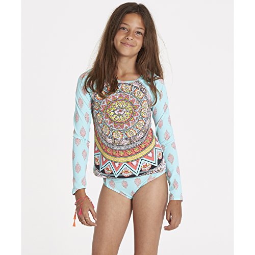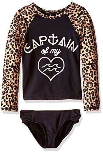 Purty wild long sleeve rashguard with graphic chest hit at center front. Basic tab side pant. UPF 50.