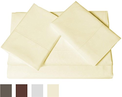 Tribeca Living 600 Thread Count Egyptian Cotton Sateen Extra Deep Pocket Sheet Set, King, Ivory