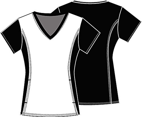A Modern Classic fit V-neck top features stretchy side panels in contrast knit. The neckband, sleeves and center back panel are all done in a contrast solid fabric. Also featured are inseam pockets. Center back length: 25 1/2"