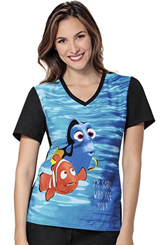 Cherokee Tooniforms Disney Nurses Uniform Scrub V-Neck Knit Panel Top Finding Nimo Who Are You?
