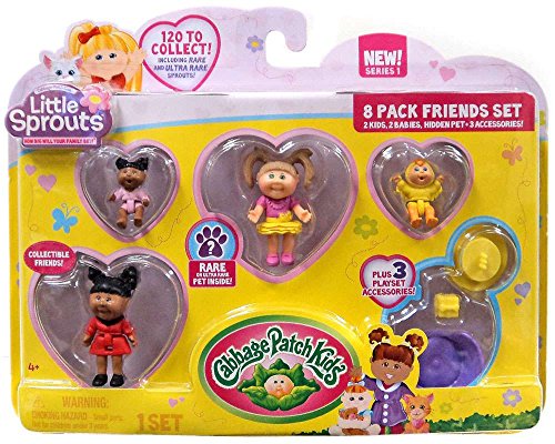 Cabbage Patch Little Sprouts Collectible Dolls Series 1.8 Pack friends set includes Collector Guide to collect them all.