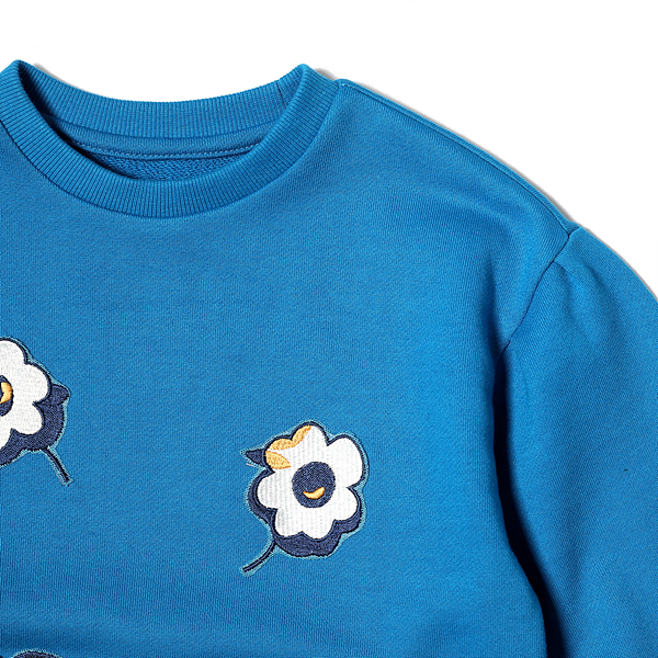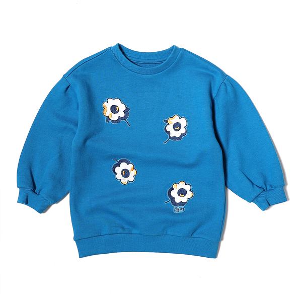 소재-겉감 : 면 100 배색 : 면 95 폴리우레탄 5 색상-블루 사이즈-110,120,130,145,155,165상세설명-소매에 살짝 볼륨감을 준 롱 맨투맨티로 제깅스나 체크 스커트 등에 코디하여 발랄하게 연출 가능한 아이템입니다.