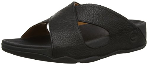 FitFlop Mens Xosa In Leather Slide Sandal, All Black, 10 M US