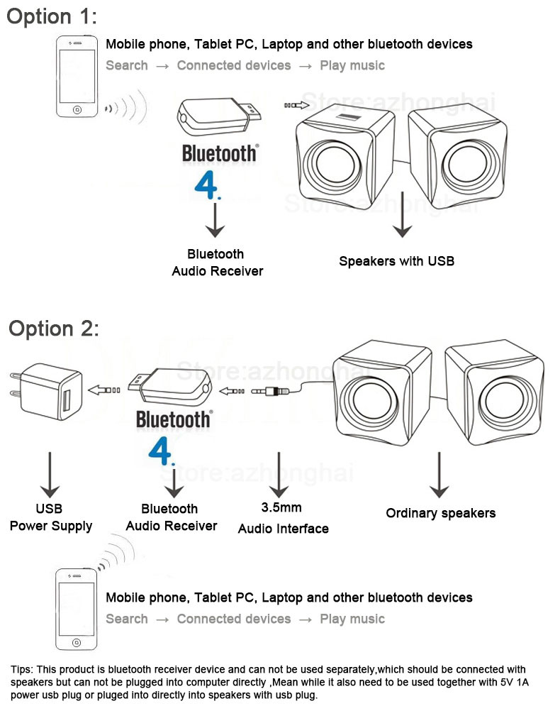 • 1 x USB Bluetooth V2.1 Audio Music Receiver  (black or white Randomly sending)