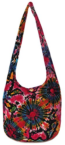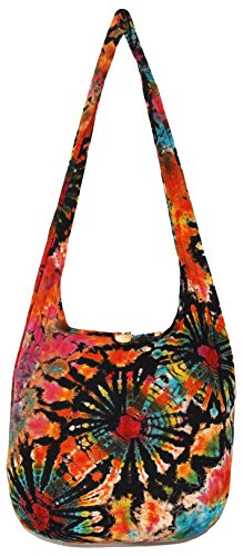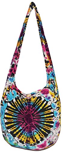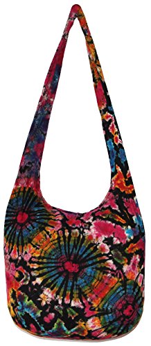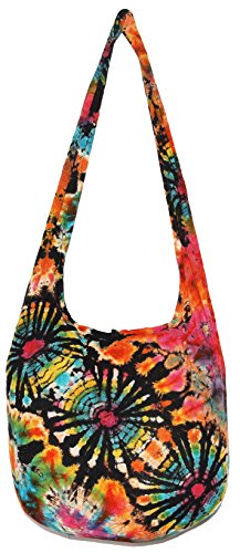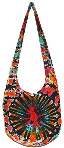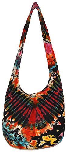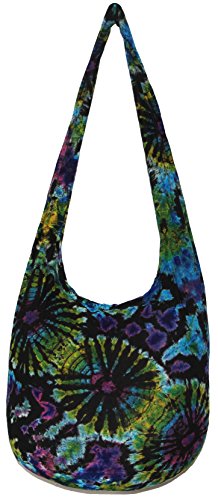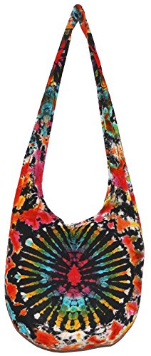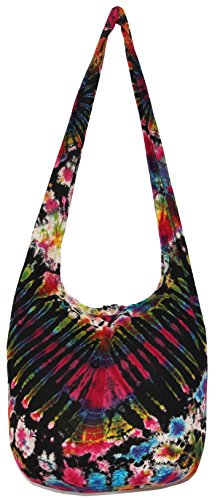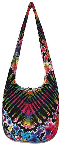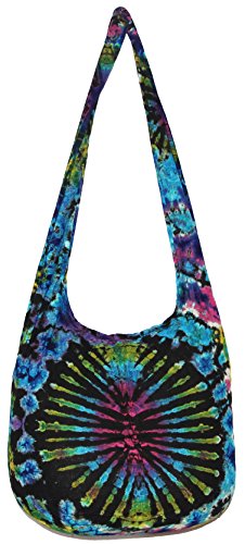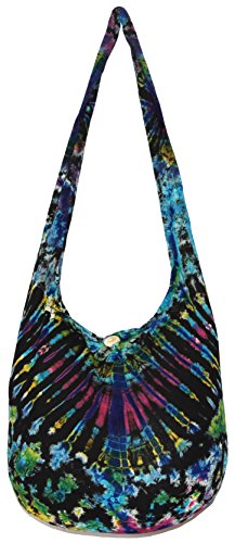 | TIE DYE Bohemian Hipster Hobo Boho Hippie Crossbody Bag Purse Black Tone 39" |
