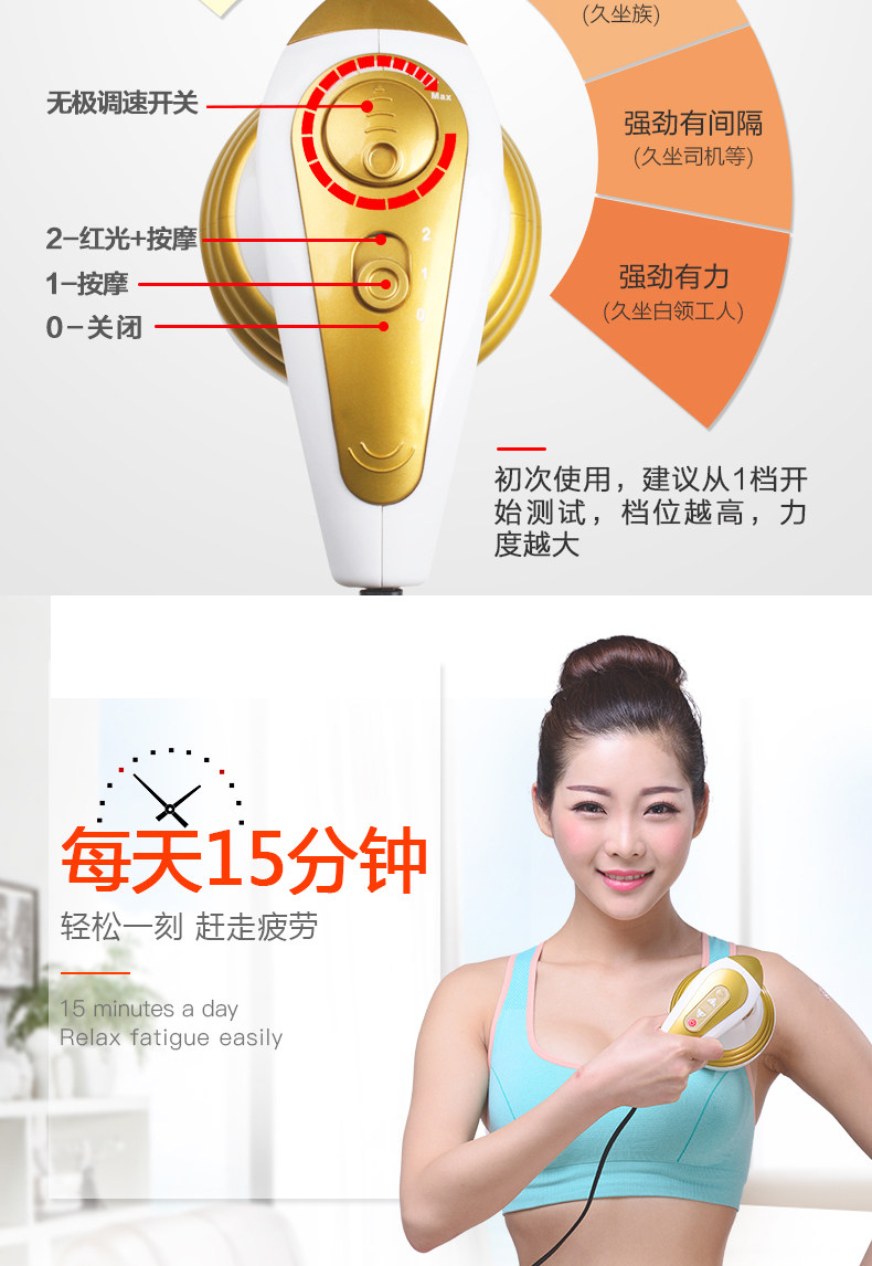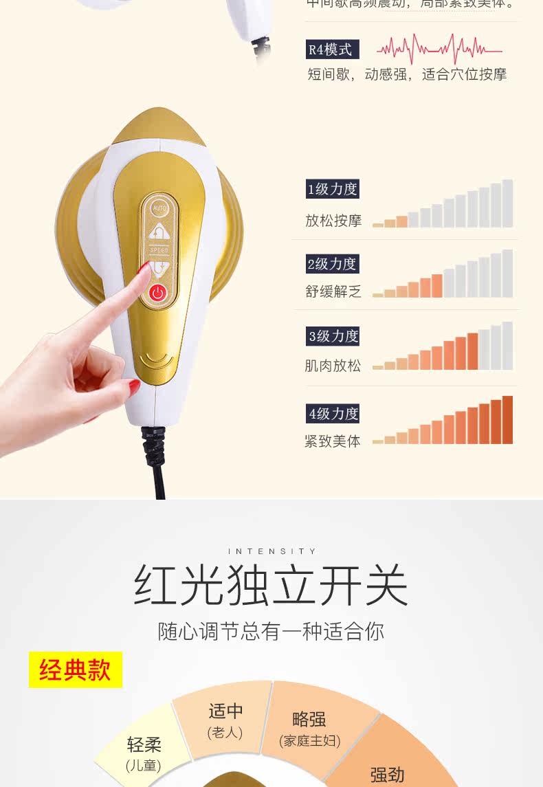 Wave massage head: deep massage, suitable for most of the time massage all parts of the body.