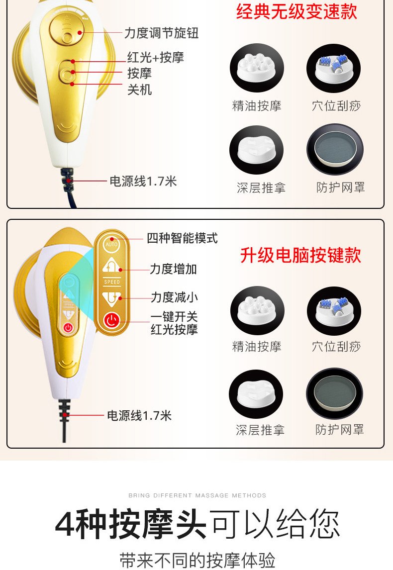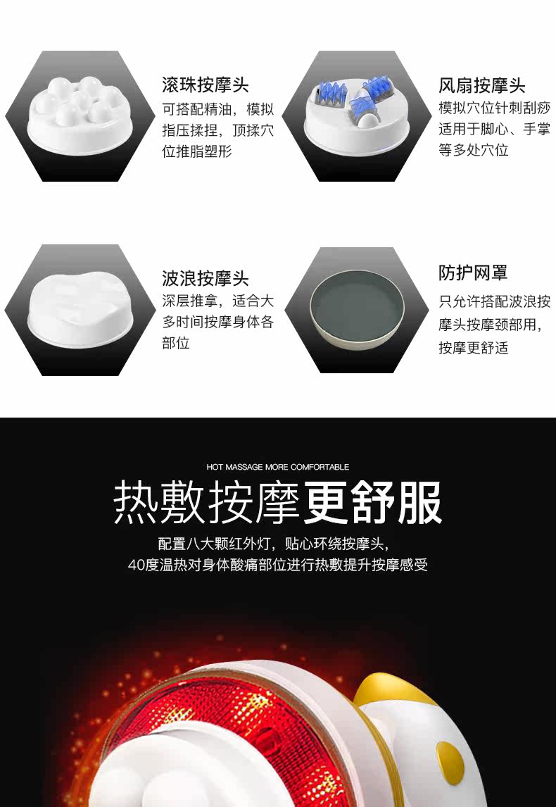 Four massage head: ball massage head can be used with essential oils, analog Shiatsu kneading.