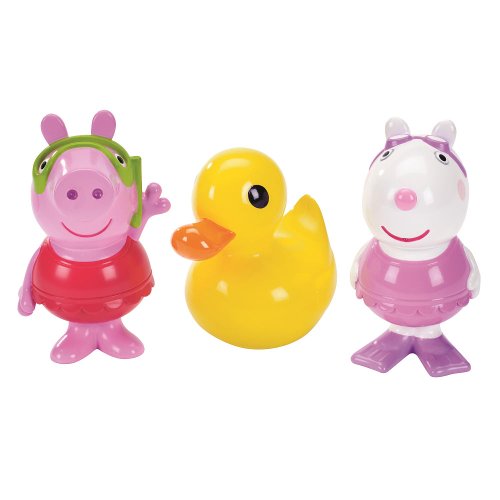 - Includes Peppa, Suzy Sheep and ducky water-squinters