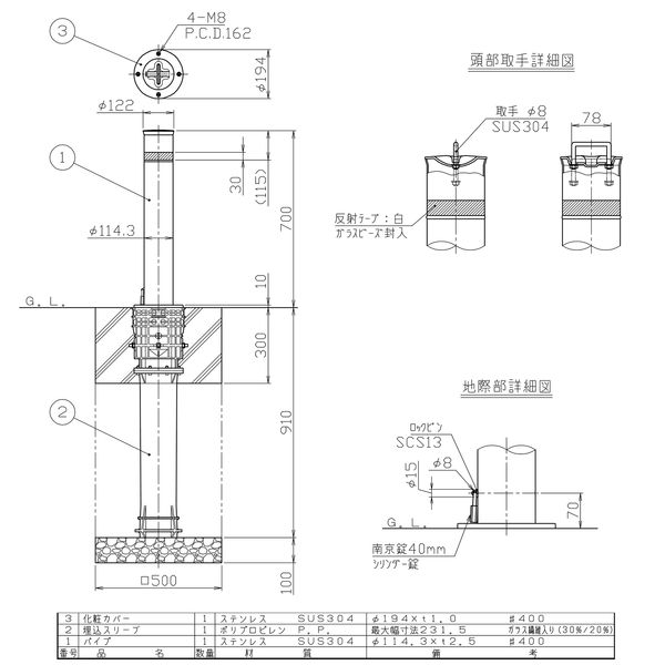 ●スペック:上下式・φ114.3・カギ付
