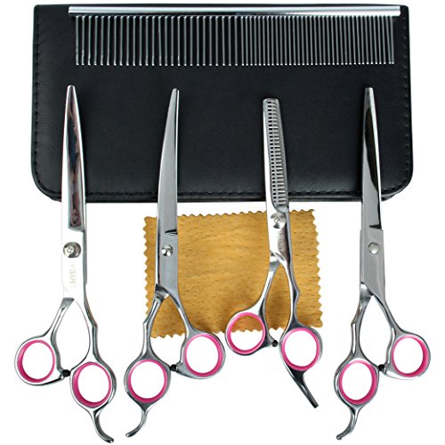 Studio : Wisspet Publisher : Wisspet Binding : Misc. Product Description Durable and long-lasting safety steel razor. Quick, easy and perfect for all pets sizes. We made this kit with professional scissors series: Handles with fingers rests are contoured for maximum comfort. Comfortable and ergonomic thumb and finger-rings. Adjustable tension control knob produces smooth scissors furthermore their razor sharp edge provides effortless shaping and finishing of all coat types. Drastically reduces the amount of effort needed. Parts list (1 set): 7.5"cutting scissors, 1 7.5" up-curved scissors, 1 7.5"down-curved scissors, 1 6.5"thinning scissors, 1 7.5" grooming comb, 1 cleaning cloth, 1 scissors case. Note: 1) Please keep it away from children. 2) While using the scissor, must not push the moving scissor with your thumb. 3) Clean the scissor after using it. About Wisspet: Your support is our best motivation. Wisspet is specialized in any pet supplies like toys, underwear, diapers, leashes, collars, grooming products, accessories with the latest concept design by our exquisite workmanship and high-grade engineering, we win high reputation in overseas market by various pet-lovers. 0