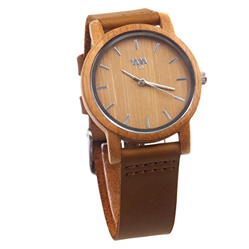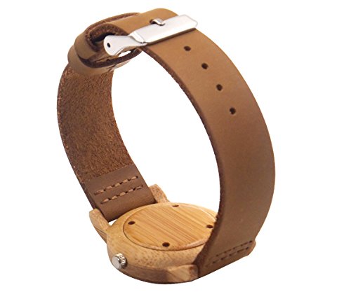 -. Feature : Bamboo Wood Watch Case : The watch is very light with wood case and glass surface. Healthy , eco-friendly and comfortable (Non-toxic Hypo-allergenic) / Imported Japanese Quartz Movement:Quartz movement operates on a battery power source, which offers long-lasting usage for up to 12 - 24 months. The quartz crystal oscillates at a consistent rate and requires no winding whatsoever, which guarantee¡¯s accurate readings every time. / Authentic Leather Strap: The smooth cowhide leather strap provides maximum comfort even during extended use. While the subtle brown texture expresses class and elegance everywhere you go. / WATER RESISTANT:Casual and stylish watch that goes with many styles of clothing,but not to be placed in or around water ,not to be for showering and swimming ,only for washing hands and raindrops, (for daily living, no sestion use it in water). / Gift Package with tool and instruction, it is a nice gift for your friends, relatives or loved ones. Easy use for the wood watch.