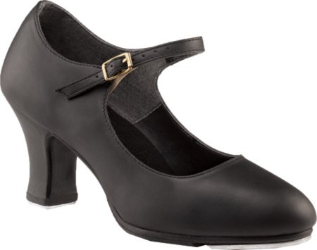 -. Feature : Mary jane tap shoe featuring leather-wrapped contoured heel in mid height with leather top lift / Pre-attached TeleTone toe and Duo Tone heel taps mounted on spring steel soundboard / Sizing is equivalent to street shoe size / Full leather lining / Foam-cushioned footbed / Non-slip heel counter