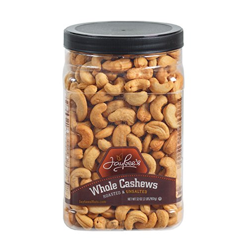 Jaybee's Unsalted Cashews Extra Large - Freshly Roasted - Great Everyday Snack or Gift Giving- Reusable Container - Certified Kosher (32 Ounces)