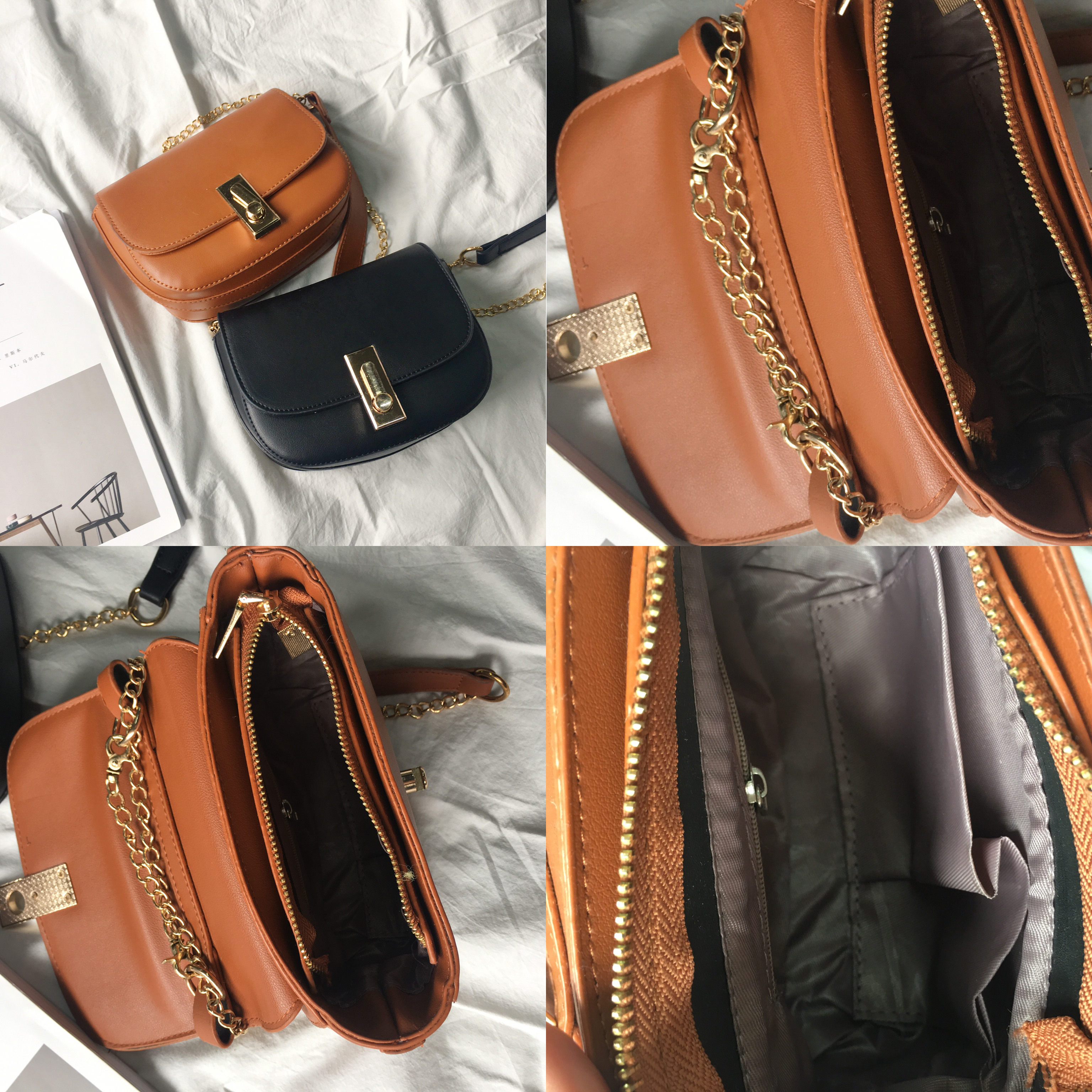 バッグは片側の中にチェーンの小さな袋があります。