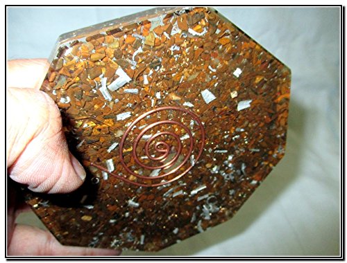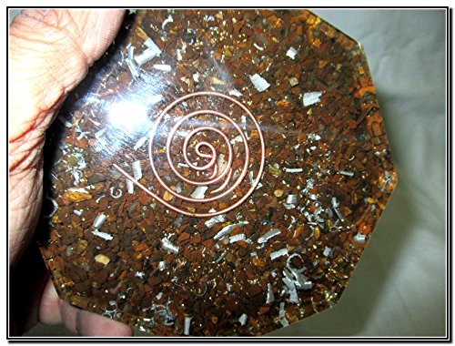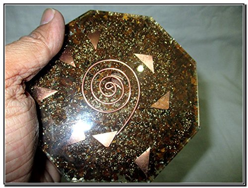 - Feature : New Tiger Eye Octagon Vastu Orgone Plate. Kindly note that since all our items are handcrafted there always exists minor deviations in size, color and looks. However, the Healing Qualities and Metaphysical Properties are excellent. A++. Have you ever wondered why you feel energized after a storm? Does your mood ever lift after you have walked in the countryside breathing in fresh air? The air around us is charged with electrically filled particles called Ions they are both positive and negative, too many positive Ions will cause an imbalance in our bodies they create free radicals which dramatically increase the aging process and unbalance us causing cellular damage. Free radicals can be caused from the following: central heating systems, air conditioning units, TV's, microwaves, speakers, stereo unit, radar systems, computers, car exhaust fumes, cigarette smoke, radiation and harmful toxins. They damage cells which is thought to be the reason for mental health and physical conditions including cancer. I am passionately researching and learning about orgone everyday, that can help reduce the effects of the above appliances causing the ions that we live in to change from positive to negative thus meaning a calmer more energetic way of living. / One Tiger Eye meaning assures the correct use of power, courage, grace and the ability to see clearly and without illusion. All of which clears the way before you to allow your success to enter your life. Stimulates wealth by attracting money into the life of the wearer but at the same time, it helps you keep the wealth you have and it prevents you from becoming abusive with your money or greedy. Promotes balance and strength to get through difficult phases of life; relieves doubt and bestows decision making with vision and clarity. Best Quality Product For Vastu Octagon. We have used Copper Coil around it to get the maximum benefits out of this divine and brilliant product of ours. BENEFITS OF ORGONE ENERGY In the environment and atmosphere around us we are intimately intertwined through electromagnetic fields of all things. In these electromagnetic fields exist electrical particles called ions and they exist everywhere. Naturally, ions are called "negative ions", they heal and protect the human body and psyche. But with man-made structures, technology and especially wireless man-made energy, these wonderful "negative ions" become damaged and turn into "positive ions" which destroy and harm our bodies. In today's modern world we are always bombarded with these unnatural harmful ions in the air. If you take an ion tester to nature, we have seen that the reading always comes out as negative. Healing negative ions are what nature originally intended for us. Now with orgone, we have the opportunity to transform our environment back to a natural state. Every city and man-made home should have one. Our Reiki Orgone Devices are made to capture and enhance the natural abilities of crystals! The crystals are chosen for their energetic properties and placed in a special resin with gold, silver, and copper. The Metal allows the etheric energy to literally be conducted and sent out the top end. / Vastushastra is the science that synchronizes a balance between human life & nature. Nature consists of five elements. These are water, fire, earth, Air (atmosphere) and Sky (space). The five basic elements, the eight directions, the electromagnetic & gravitational forces of the earth, the cosmic energy emanating from the planets as well as the atmosphere and their influence on human life have all been Benefits from using my orgone devices: • Block negative mind control transmissions • Cleanse area of negative occult energies • Place near cell towers or power lines to neutralize • Create an optimal atmosphere • Cleanse the energy of a large area • Attract positive energy to a property • Prevent Chemtrails from polluting • Help crops grow • Remove poisons, germs, and biological influences • Block harmful radiation • Create peaceful energy • Reduces Radiation caused by wireless technology • Reduces The Affects Electromagnetic Fields • Electricity leakages from TV's, Microwaves etc. The energy can be Felt! The energy can be seen by some - notably children and those who can see auras. If you cannot feel the energy right away - you will after spending enough time around your orgone - it makes you more energy sensitive! *Animals love the presence of an orgone. Cats especially have an attraction to orgonite. I have heard reports of birds, deer and other wild animals coming when these devices have been placed in backyards.Its also nice to see other plant experiments furthering the proof of the power of these wonderful orgone pieces! Examples of things that emit harmful radiations are cell phone towers (these companies go over their legal FCC radiation limit EVERY DAY), HAARP, satellite dishes, radar, wi-fi, wi-max, and telecommunication towers. Cell phone towers are pulsed at anywhere from 3 KHz to 3,000GHz moving at the speed of light according to the FCC. / Vastu shastra means science of architecture and construction. After years of research, Reich uncovered the process of cancer cell formation in the body from what was once healthy tissue: