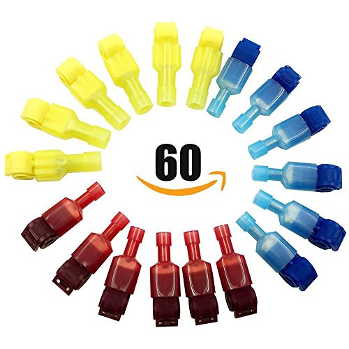 Migiwata Self-Stripping Electrical T-tap Connectors Female Splice Terminal and Male Spade Set of 60pcs for Quick Wire Connection and Disconnection of Automotive and Motorcycle