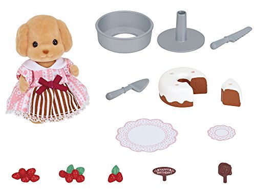 -. Feature : Includes Melinda Toy Poodle / Features chiffon cake, strawberries, cake toppers, baking pan, server, "knife" and dollies / Decorate a chiffon cake with fresh fruit and sweet chocolate! / Can be used independently or with all Calico Critters accessories / Mix and match with other Calico Critters play sets to create a whole Calico Critters village!