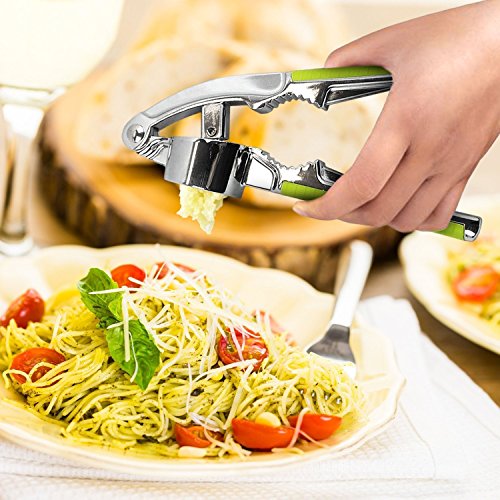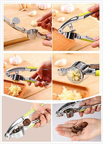 Garlic Presses, UNEGO Ergonomic Garlic Press Mincer Stainless Steel Ginger Press Slim Garlic Chopper Nut Cracker Tool for Home Kitchen-Green(Easy-Clean,Rust-Resistant, Non-Slip Silicone Handle)