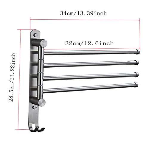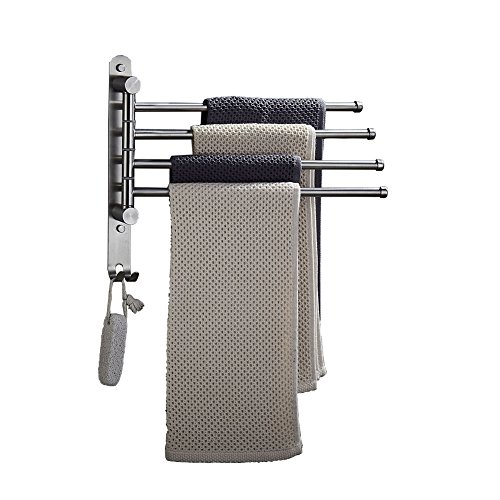 MANCEL Folding Towel Bar SUS304 Stainless Steel Swing Out Robe Holder Racks Wall Mounted 4 Arms Hooks