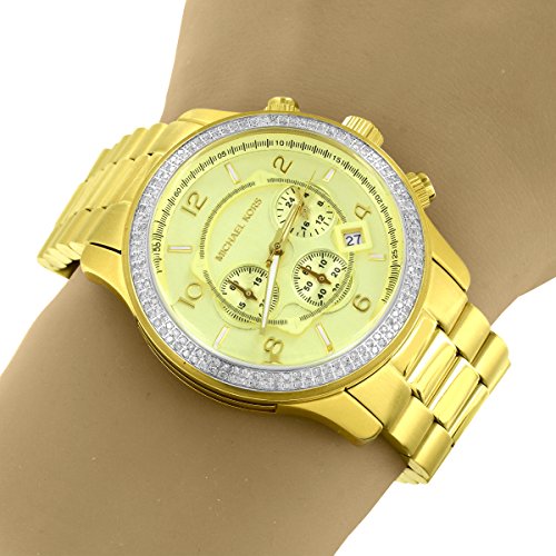 -. Title : Gold Tone 45mm Stainless Steel Watch Custom Real Diamonds 1.50 Carat