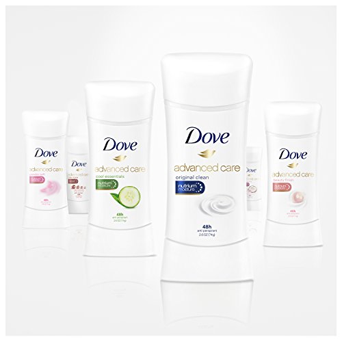 Dove Advanced Care Antiperspirant Deodorant Cool Essentials 2.6 oz, Twin Pack combines the reassurance of up to 48 hours of antiperspirant protection with the refreshing scent of cucumber and green tea. In addition to keeping underarm wetness at bay for up to 48 hours, the 0% alcohol (ethanol) formula helps delicate underarm skin to recover from the irritation that regular shaving can cause. The formula also includes Dove NutriumMoisture and unique ¼ moisturizers, for smooth underarms that look and feel softer with regular use. If you’ve been wondering how to get soft armpits, choose Dove Cool Essentials for touchably soft, smooth underarm skin and a scent to awaken your senses in the morning. To use, apply this antiperspirant deodorant to dry skin after showering or bathing and enjoy fresh and comfortably dry skin all day long. For best results, make sure your underarm skin is cool and completely dry before applying, and give each underarm a few swipes for even coverage. At Dove, our vision is of a world where beauty is a source of confidence, and not anxiety. So, we are on a mission to help the next generation of women develop a positive relationship with the way they look – helping them raise their self-esteem and realize their full potential.Feature