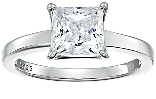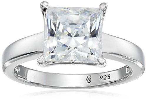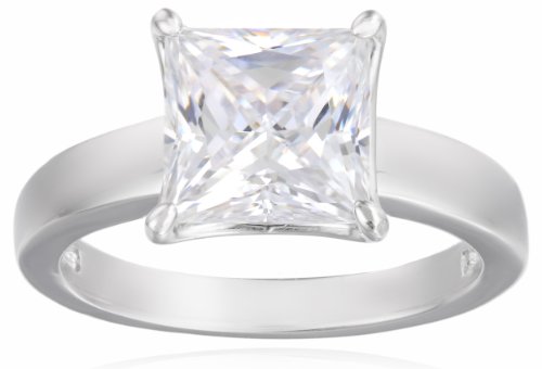 Platinum-Plated Sterling Silver Swarovski Zirconia 3 cttw Princess Solitaire Ring, Size 6