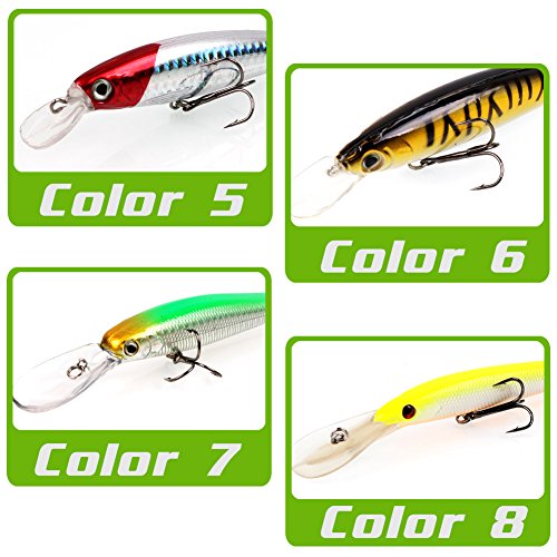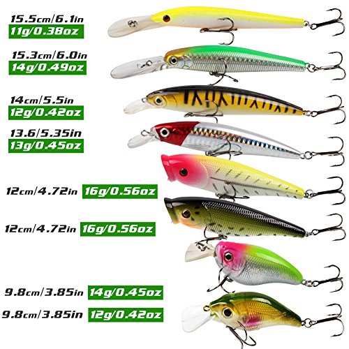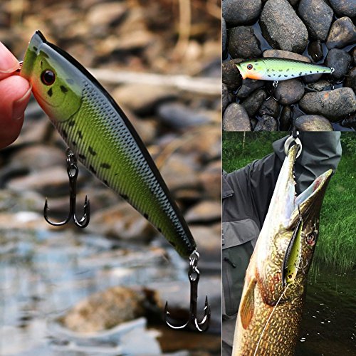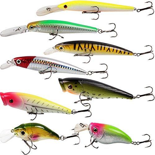 -. Binding : Misc. -. Brand : Sougayilang -. Feature : The Fishing lure have 3 segments,2 strong treble hooks and 3D lifelike eyes. / High resolution body detail.Smooth and rapid diving action. / Life-like swimming actions in water to provoke predator to bite. / Durable ABS material contributing to long service life. / Suitable for different kinds of fishes, wonderful tool for fishing lovers. -. IsAutographed : 0 -. IsMemorabilia : 0 -. Label : Sougayilang -. Manufacturer : Sougayilang -. ProductGroup : Sports -. ProductTypeName : SPORTING_GOODS -. Publisher : Sougayilang -. Studio : Sougayilang -. Title : Sougayilang Fishing Lures Wobbler Fish Topwater Lure Swimbait Crankbait Minnow Artificial Bait With Hooks Carp Pike Bass Fishing Tackle Tool ( Pack of 8 )