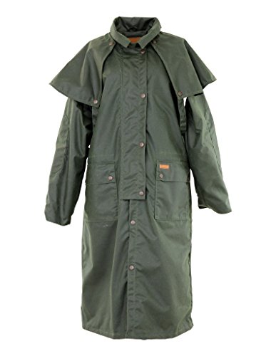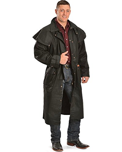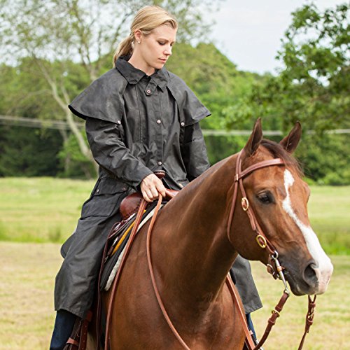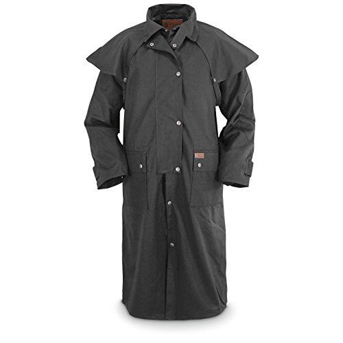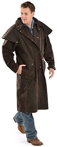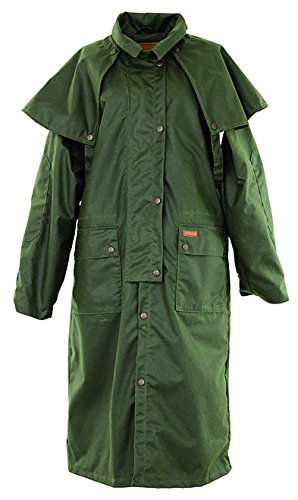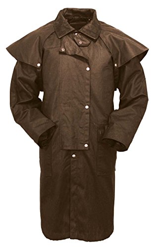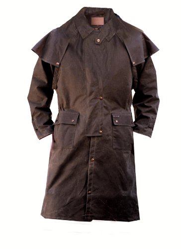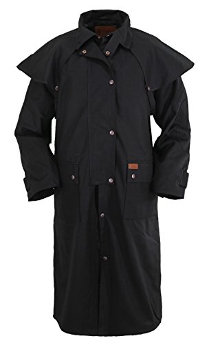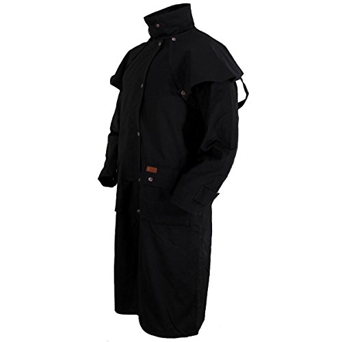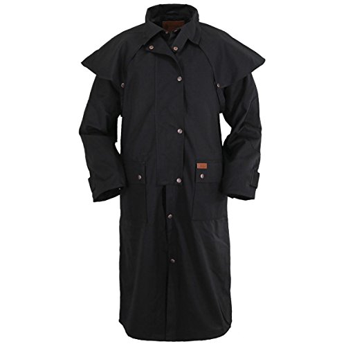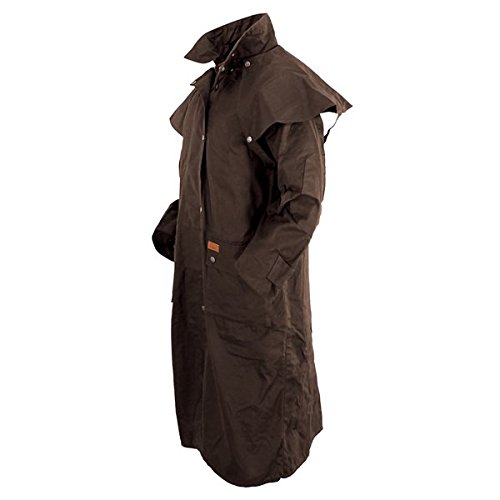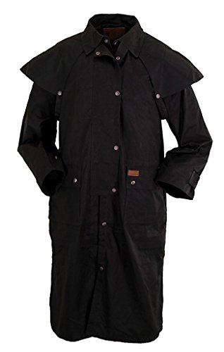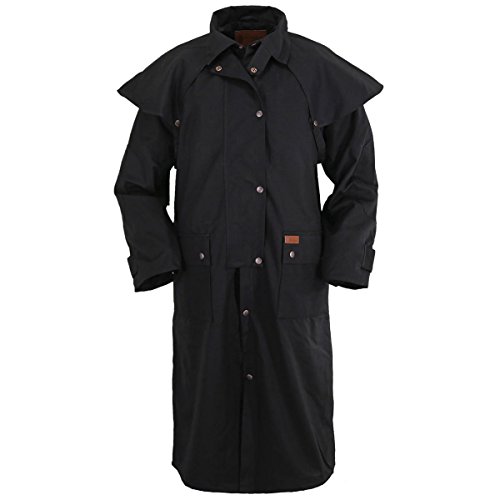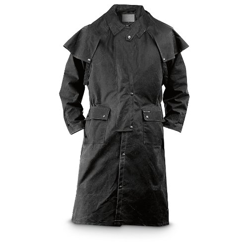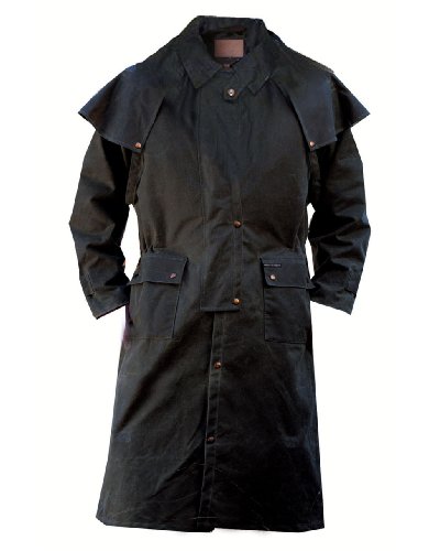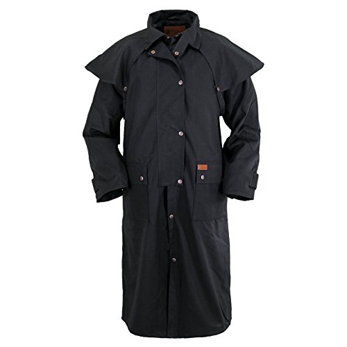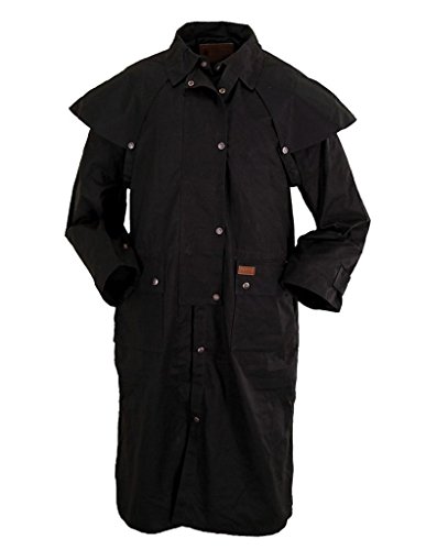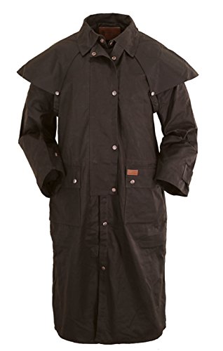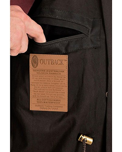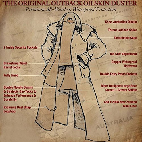 Studio : Outback Trading Co Publisher : Outback Trading Co Binding : Apparel Product Description Since 1983, Outback Trading Company Ltd. has been building exceptional outdoor adventure outerwear - perfect for the cowboy, equestrian, and outdoorsman. Outback Trading Co. outerwear boasts tested wear in all kinds of rugged climates and weather conditions. Outback jackets, vests, coats and more stand up to your work, recreation, travel, and sport lifestyle with heavy duty hardware, quality linings, and uniquely functional, weatherproof fabrics. The Outback Trading Co. long oilskin duster features stay-put leg straps and traditionally styled front and back capes. Snap front closure with snap-over storm flap. Oversized double entry patch pockets and adjustable snap cuffs. Inside drawstring waist. Duster is made of incredibly rugged 100% cotton oilskin. Imported. Sizes: S(36-38), M(40-42), L(44-46), XL(48), 2XL(50). 0