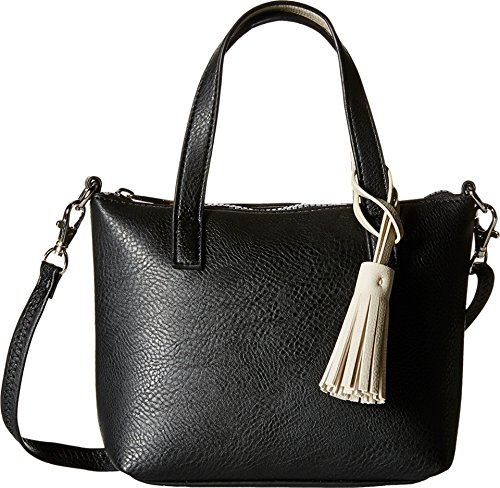Zippered main closure. Dual flat carry handles. Adjustable and removable cross-body strap. Exterior features hanging brand and tassel charm. Flat base. Unlined interior with two slip pockets. Imported.