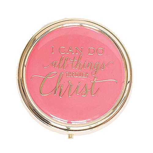 I Can Do All Things Through Christ Coral Pink 2.5 inch Metal Gold Tone Round Pill Case