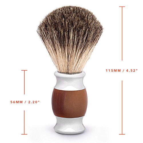 Product Description The QSHAVE 100% pure badger hair shaving brush generate a rich and warm lather very quickly. Classic elegent handle which is made of faux agate is very comfortable to hold. Perfect for people who enjoy the wet shave. 0