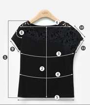 | 尺码 | ①前衣长 | ②后中长 | ③胸围 | ④腰围 | ⑤下摆围 | ⑥肩宽 | ⑦右袖长 | ⑧右臂围 | ⑨右袖口围 | ⑩左袖长 | ⑾左袖口围 | ||