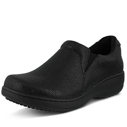 -. Feature : Vibrant print shoe, that is oil and skid resistant / Triple density, antifungal, antibacterial, removable insole / Polyurethane outsole with non-slip tpr inserts on a 1 1/2 " heel / Naturally shock absorbent, lightweight and long lasting / Vegan friendly!
