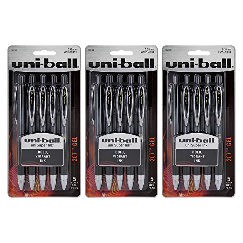 -. Title : Uni-Ball Signo 207 Gel Retractable Roller Ball Pen, 0.38mm, Micro Point, Black Ink, 15-Count