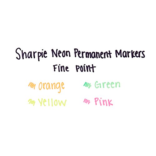 -. Feature : Color-full, brilliant shades ignite thought-provoking messages / Ink won't bleed through paper and is acid-free and archival-quality / Quick-drying ink is both water- and fade-resistant; AP certified / Fine point and slim, contoured design for effortless detail and control / Includes: black, blue, red, and green Sharpie fine point pens plus a bonus Sharpie Neon permanent marker