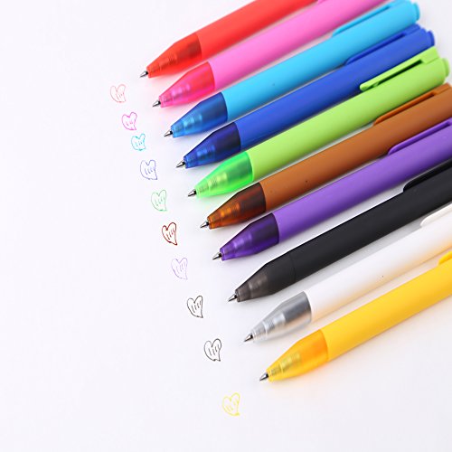 -. Feature : √ SMEAR-PROOF AND LEAK-PROOF - Dries 3x faster to reduce smearing and save your time. Come out steady and write smoothly, the pen tip does not accumulate the ink, you would not see the P.R.Int on the reverse side, keep your ideas, enjoy your writing by hand with no distractions. / √ STRONG PP MATERIAL & RETRACTABLE - Safe for children, no poison, no smell, no pollution, acid-free, safety and ENVIRONMENTAL. They are also excellent bullet journal gel pens. / √ BULLET TITANIUM BEAD PEN POINT - Shock-proof, durable and reliable, neat writing. Bright gel pens for adult coloring books, making a to-do list, drawing a gift card, notes in class or meeting, sketching, doodling or coloring. / √ TIMELESS STYLE - Ten sweet confectionery colorful pens, rose, lake blue, yellow, red, black, blue, yellow-green, purple, brown etc. Class notes are marked with different colors for better study. / √ ERGONOMIC SOFT TOUCH PEN - Even left-hander writers love it. 100% HIGHEST QUALITY PENS - 100% SATISFACTION GUARANTEED - 100% MONEY BACK REFUND IF UNHAPPY FOR ANY REASON.