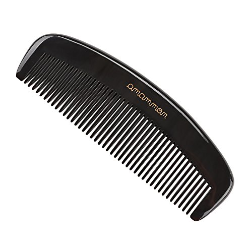 Amammon Black Ox Horn Comb - Anti Static Natural Detangling Hair Comb - Handmade Premium Quality Natural No Handle Fine Tooth - Exquisite Gift