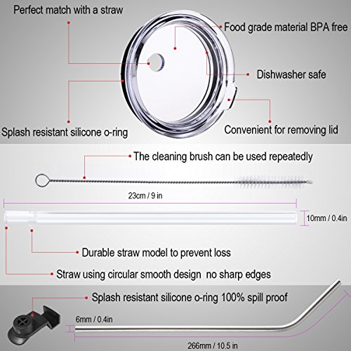 - FREE GIFTS:Precision cut to fit your 20 oz stainless steel travel tumblers, our drink lids provide an air and watertight seal to keep coffee and other liquids in and dust out of your mug while you’re at work, traveling or hitting up the gym.When you travel, you can put it in your bag, do not worry about it will leak,And extra cleaning brush, reusable to clean your straw and other kitchen or outdoor supplies.