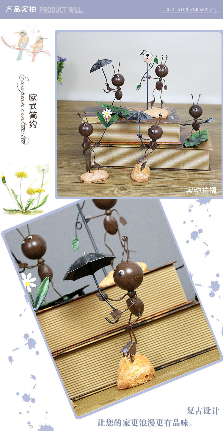 创意可爱小蚂蚁摆设 田园家居饰品客厅工艺品卧室 酒柜装饰品摆件