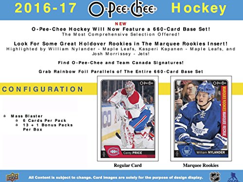 2016 2017 Upper Deck O Pee Chee NHL Hockey Series Unopened Blaster Box of 14 Packs with Chance for Short Printed Marquee Rookie Cards and Autographs