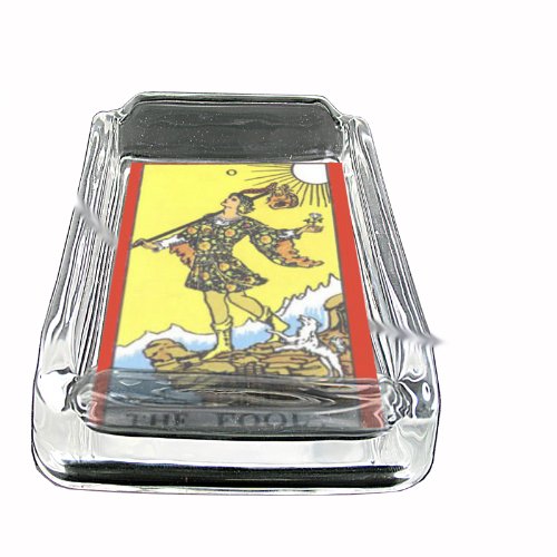 -. Title : The Fool Tarot Card Glass Square Ashtray D-090
