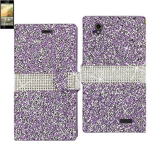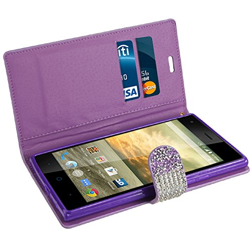 Reiko Bling Diamond Wallet Case for ZTE Warp Elite N9518 - Retail Packaging - Purple